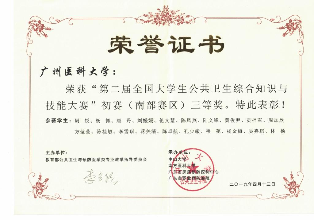 由教育部公共卫生与预防医学专业教学指导委员会主办的第二届全国大学生公共卫生综合知识与技能大赛初赛于近日落下帷幕。本次大赛初赛分北部、中部、南部三个赛区,包括北京大学、华中科技大学、复旦大学等在内的60所高校参赛。肉漫屋 高度重视本次赛事,认真组织预防医学专业学生参赛,精心安排骨干教师进行专项培训,选拔了周锐、杨佩、唐丹、刘媛媛、伦文慧、陈凤燕、陆文锋、黄俊尹、贡梓军、周加欣、方莹莹、陈桂敏、李雪琪、蒋关清、陈卓航、孔少敏、韦苑、杨金梅、吴嘉琪、林杨等20名优秀学生代表,参加了4月13日的全国统一初赛。肉漫屋 从南部赛区20所高校中脱颖而出,获得此次初赛三等奖,并成功晋级,将参加5月份的全国决赛。