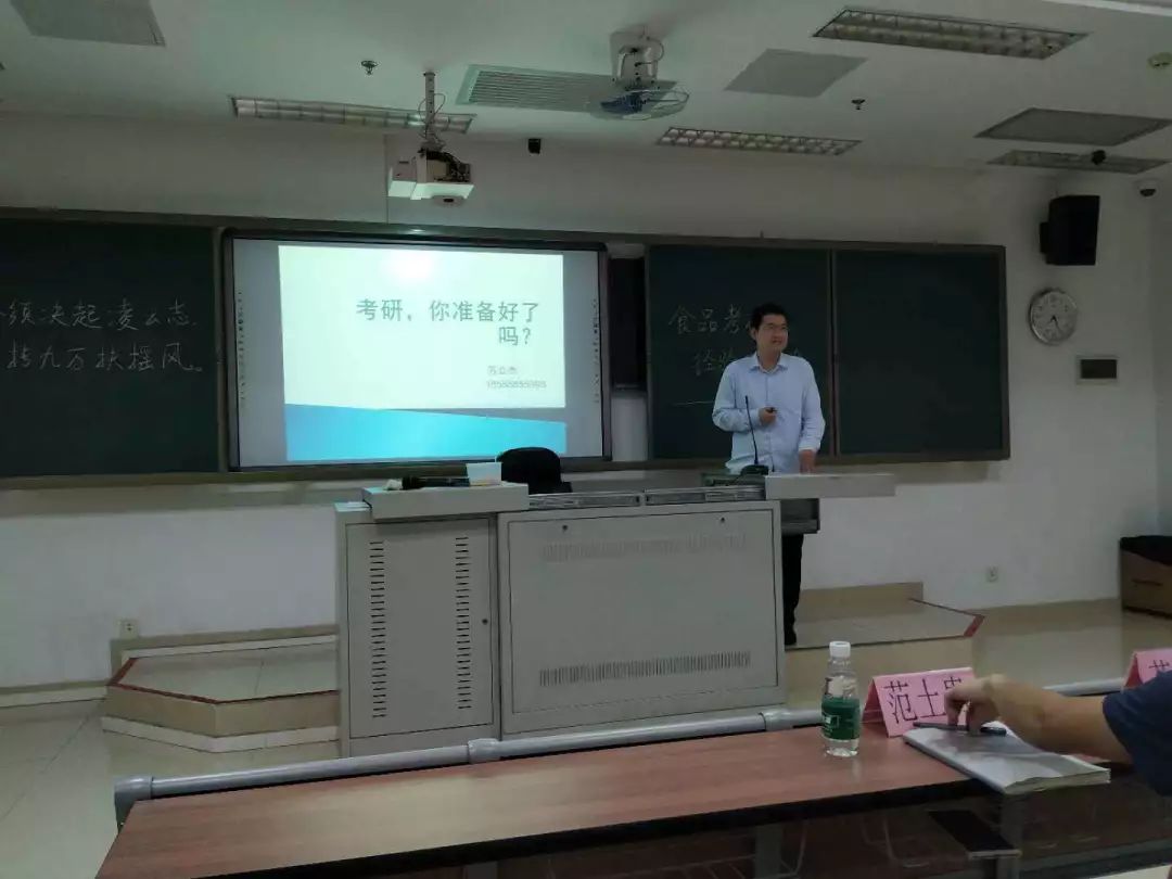 越秀校区讲座主要面向高年级预防医学专业学生,预防医学系主任练玉银老师详细介绍了预防医学类专业在研究生阶段的设置情况,学生办主任刘宇珊老师就考研规化为大家提出中肯建议,2019届准毕业生陈卓航同学则从备考安排、院校专业选择、复习材料置办等细节出发为大家作了详细分享交流;番禺校区讲座主要面向在校食品安全与质量专业学生,食品专业苏立杰老师、2019届准毕业生范土贵同学分别根据各自的经验为大家介绍了专业设置情况、备考策略和应试技巧等内容;活动引起同学们的热烈反响,并与老师、嘉宾通过现场问答的形式深度互动,帮助大家进一步明晰了研究生招考相关信息、树立起良好的备考意识。