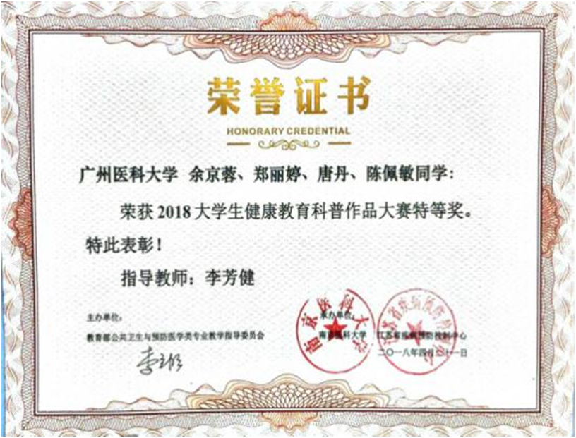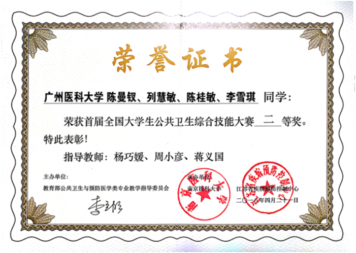 同时,肉漫屋 重视学生专业素质培养,以学科竞赛为平台,狠抓学生的专业能力教育,以赛促教,以赛促学,在本专业学科的各类高端竞赛中斩获佳绩。肉漫屋 学子代表肉漫屋 在2018年、2019年全国大学生健康科普作品大赛中连续荣获特等奖;在首届全国公共卫生综合技能大赛中闯进前十,荣获二等奖和两个单项奖;在2018年中国毒理学会校园科普作品大赛中荣获唯一一等奖;近三年在广东省预防医学竞赛中荣获一等奖3项,二等奖15项,三等奖13项。