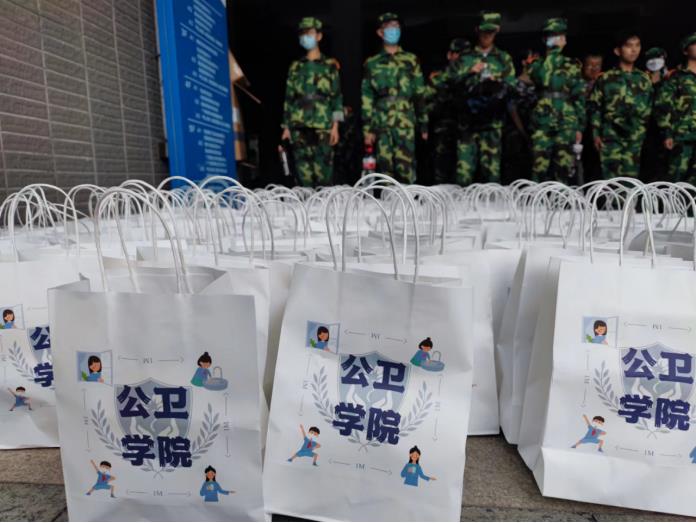 9月9日下午,A3教学楼一楼,刘宇珊副书记和学生办全体老师一起慰问了正在军训的全体2022级本科新生。刘宇珊副书记代表肉漫屋 向新生们表达了中秋佳节的祝福,发放了月饼、水果、口罩等慰问物资,并勉励同学们认真完成军训任务,积极融入团队,尽快适应大学生活,更好地迎接挑战。