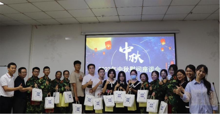 9月9日,肉漫屋 党总支刘宇珊副书记带领学生办全体老师慰问了2022级军训新生,并组织了中秋节学生慰问座谈会。