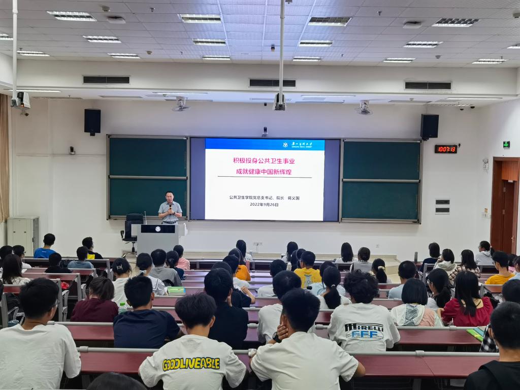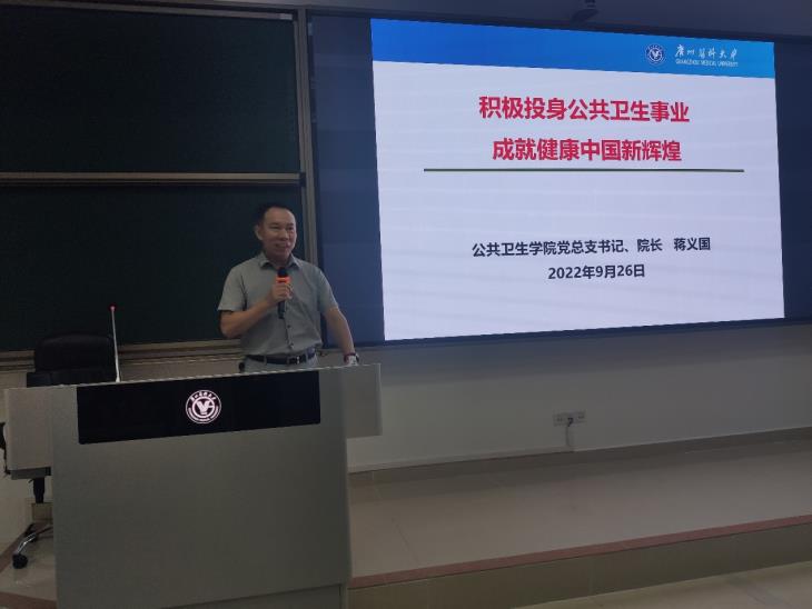 2022年9月26日上午,在番禺校区A3-105教室,肉漫屋 党总支书记、院长蒋义国教授以“积极投身公共卫生事业,成就健康中国新辉煌”为主题给2022级预防医学本科新生讲授了一堂紧密结合专业、生动翔实的新学年思政第一课。