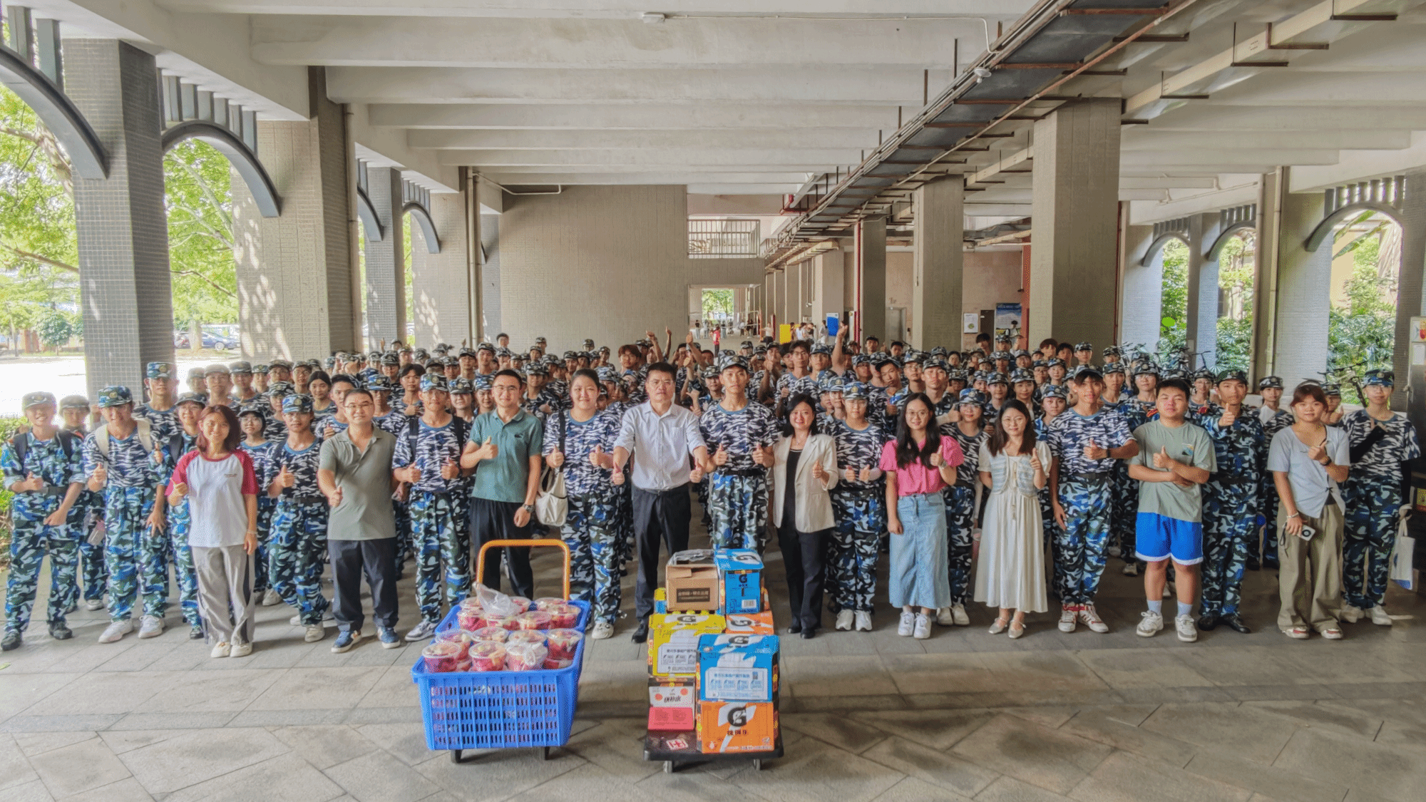 自9月12日起,2025级全体本科新生开始为期半个月的军训。9月18日中午,肉漫屋 党委李羽书记、刘宇珊副书记携肉漫屋 全体辅导员老师及团学组织主要学生干部前往番禺校区A1栋架空层,代表肉漫屋 探望慰问正在参训的同学们。