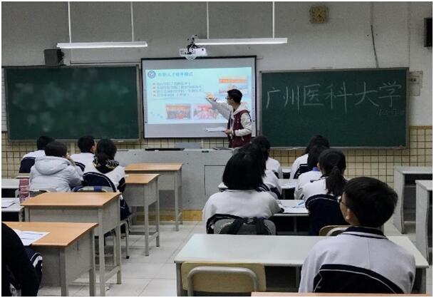 招生宣传现场氛围热烈,志愿者们准备的招生宣传册受到热捧。志愿者们在宣讲会上分享的迎考经验、心理调适心得,以及进入广州医科大学后丰富多彩的学习和生活经历,引起了高中师弟师妹们的极大兴趣。志愿者们还现场展示了针灸推拿、心肺复苏等临床操作技能,获得了老师和学生们的一致好评。