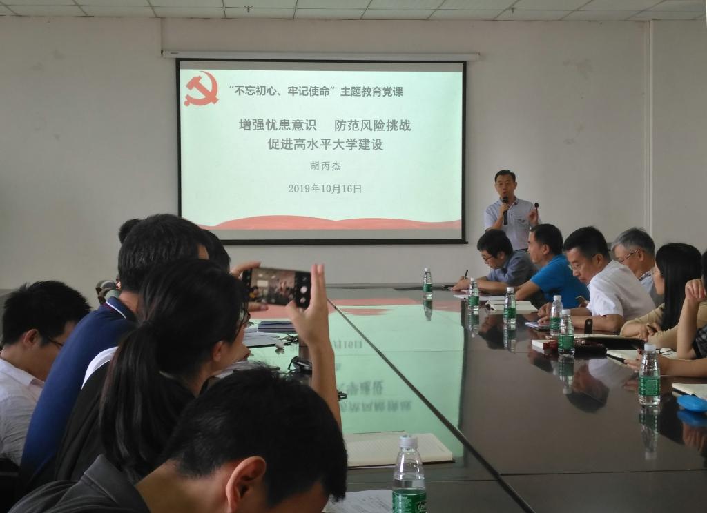 2019年10月16日下午,我校党委常委胡丙杰副校长在番禺校区肉漫屋 B2-502会议室,为肉漫屋 、财务处、图书馆、信息与现代教育技术中心、保卫处等部门党员们上了一堂生动有意义的主题教育党课。