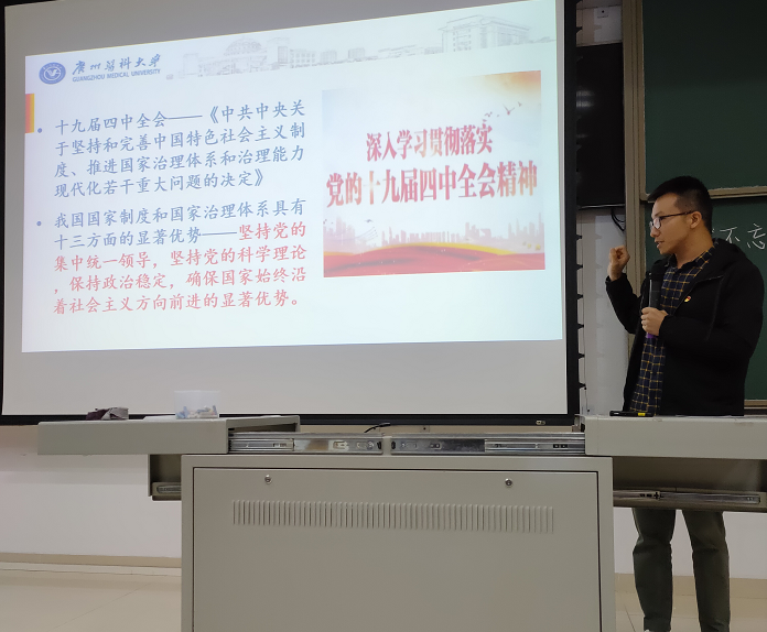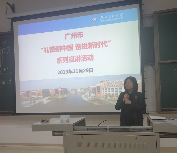11月29日晚,根据市委宣传部《关于印发<“礼赞新中国奋进新时代”广州千场大宣讲活动实施方案>的通知》和我校宣传部要求,为深入推进习近平新时代中国特色社会主义思想的学习宣传贯彻,庆祝中华人民共和国成立70周年,同时也为响应“不忘初心,牢记使命”主题教育调研中学生党员提出希望增加专题理论学习需求,肉漫屋 党总支在番禺校区A3-102室举办专题宣讲学习活动。
