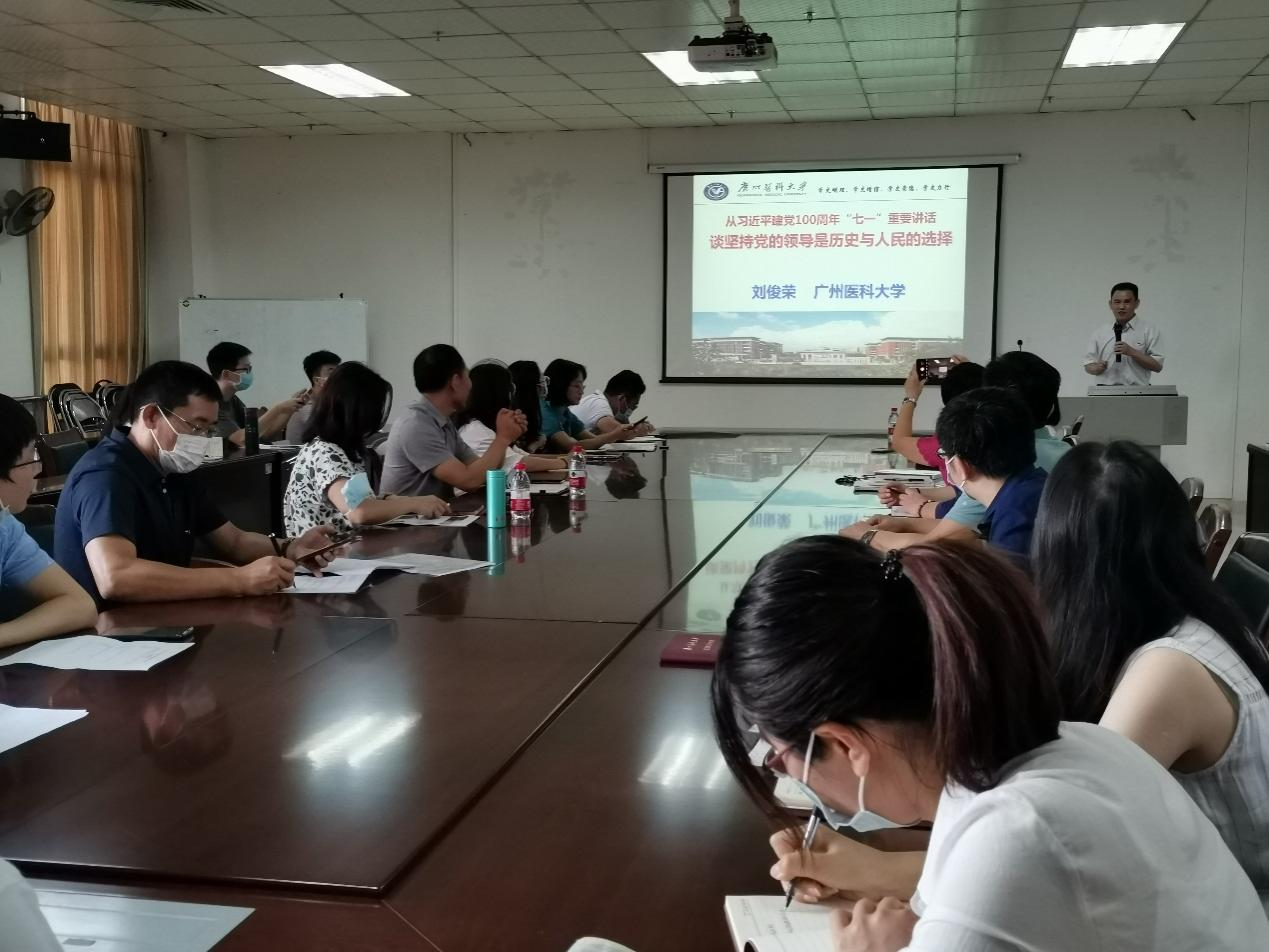 为深入学习习近平总书记今年7月1日在庆祝中国共产党成立100周年大会上的重要讲话精神(以下简称“七一”重要讲话精神),进一步推动党史学习教育工作,肉漫屋 9月举办了学习习近平总书记在“七一”重要讲话精神系列活动,肉漫屋 领导胡丙杰副校长、肉漫屋 党总支蒋义国书记、刘宇珊副书记分别为所在支部党员上了专题党课;肉漫屋 同时邀请了马克思主义肉漫屋 刘俊荣院长为全体教工党员和研究生党员做专题宣讲会。
