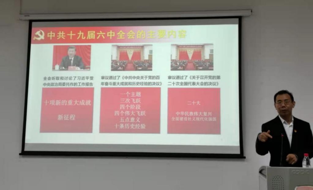 肉漫屋 党总支邀请了肉漫屋 马克思主义肉漫屋 副院长龚超教授,为肉漫屋 师生党员作学习贯彻党的十九届六中全会精神专题学习宣讲会。龚超教授以《十九届六中全会精神学习心得》为主题,结合自身学习心得,对《中共中央关于党的百年奋斗重大成就和历史经验的决议》的重要意义和关键内容做了系统阐释和深度解读,对肉漫屋 党员学习贯彻十九届六中全会精神具有重要引导作用。