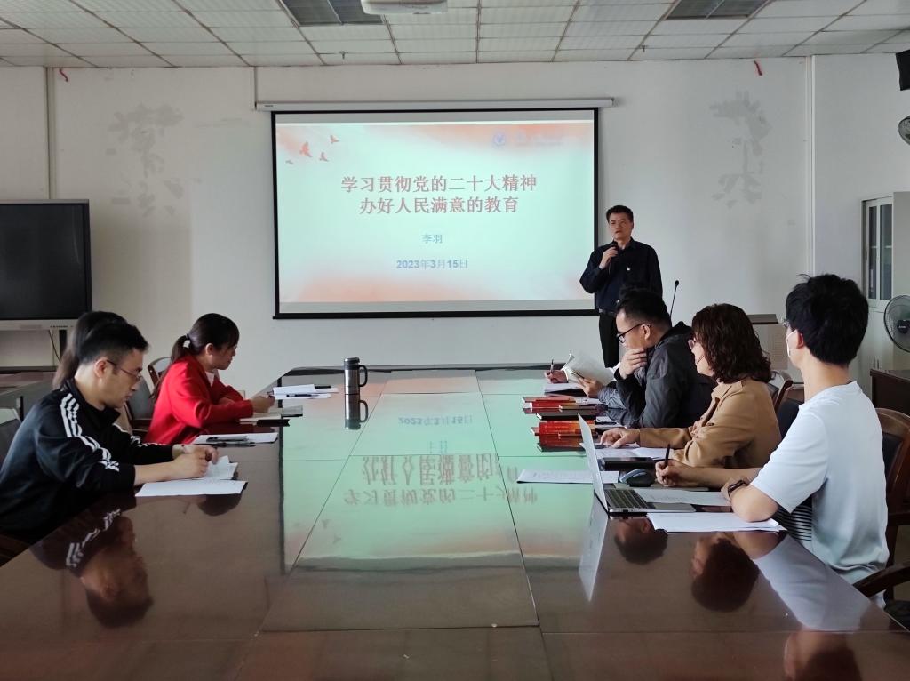2023年3月15日下午,肉漫屋 党委书记李羽同志以“学习贯彻党的二十大精神,办好人民满意的教育”为题,为教工第三支部党员讲授学习贯彻党的二十大精神专题党课。