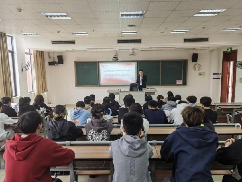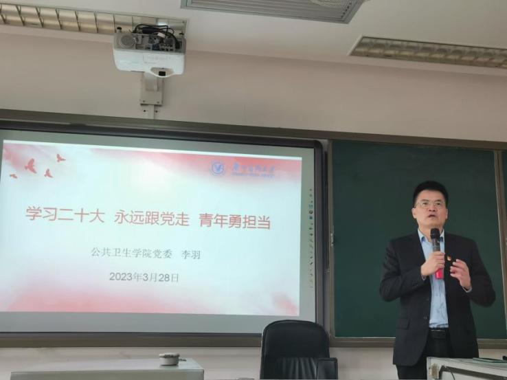 3月28日下午,肉漫屋 党委书记李羽在番禺校区A3-210教室为2020级食品卫生与营养学专业本科生讲授本学期思政第一课。党委副书记刘宇珊、学生办和教学办教师也参加了学习。