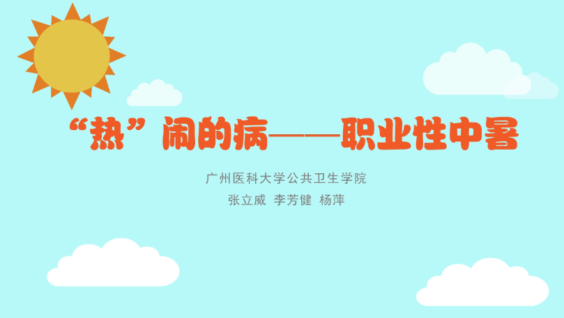 该作品以2019年国家卫生健康委员会发布的GBZ 41—2019《职业性中暑的诊断》最新标准为依据,以夏季高发的职业性中暑为主题,围绕中暑的症状、发病机理、中暑的处理以及高温作业如何预防中暑等内容,采用形象且通俗易懂的动画方式,对于职业性中暑的预防以及有效处理具有积极的科普宣传作用。