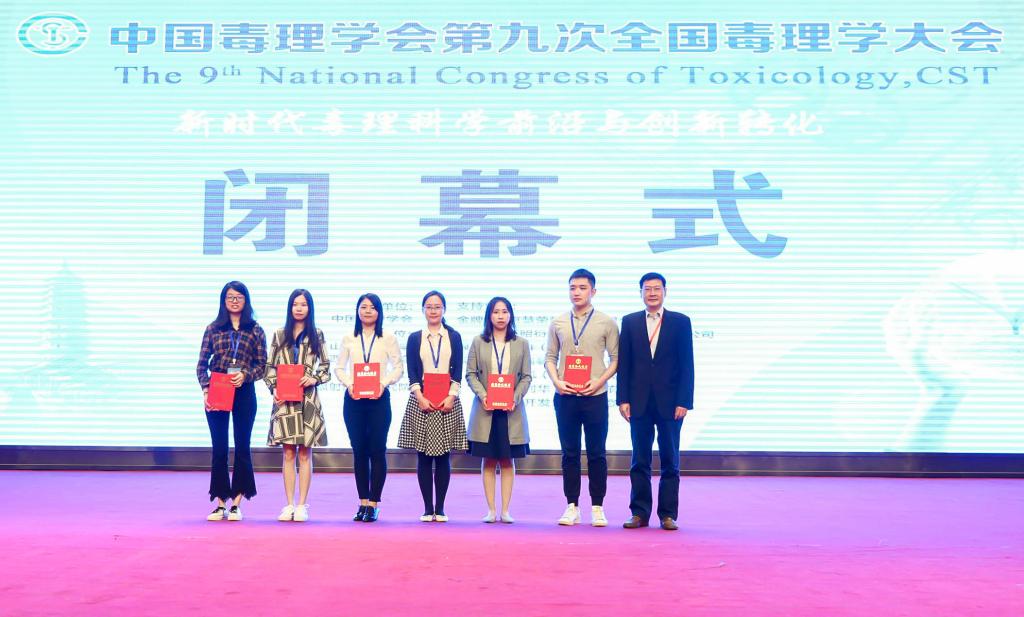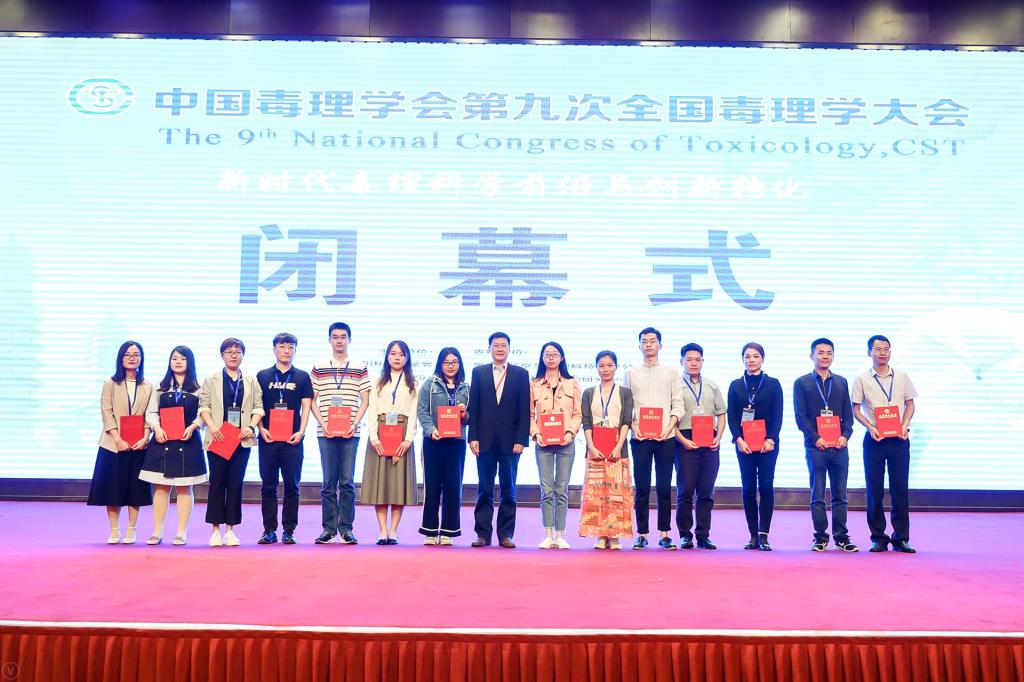 中国毒理学会第九次全国毒理学大会于2019年9月17-20日在山西太原召开,来自全国近1500余名毒理学及相关领域的专家学者参加了本次学术盛会。肉漫屋 有3位研究生被遴选为作分会场的口头报告,另有4位作了壁报展示。其中张楠博士生的“外泌体环状RNA促进肺癌生长和转移”口头报告,及贾阳阳博士的“circRNA406961在大气细颗粒物诱导人支气管细胞炎症反应中的功能与机制研究”壁报,获得大会优秀论文奖。本次大会共评出20位优秀论文获奖人,其中13位为口头报告人,7位为壁报作者。大会闭幕式上,中国毒理学会理事长周平坤研究员向获奖者颁发了证书。