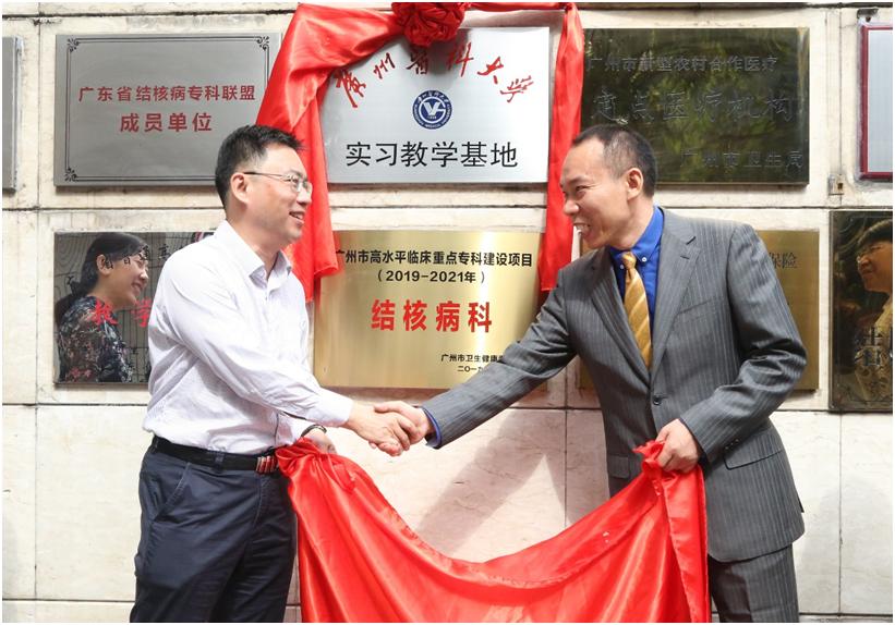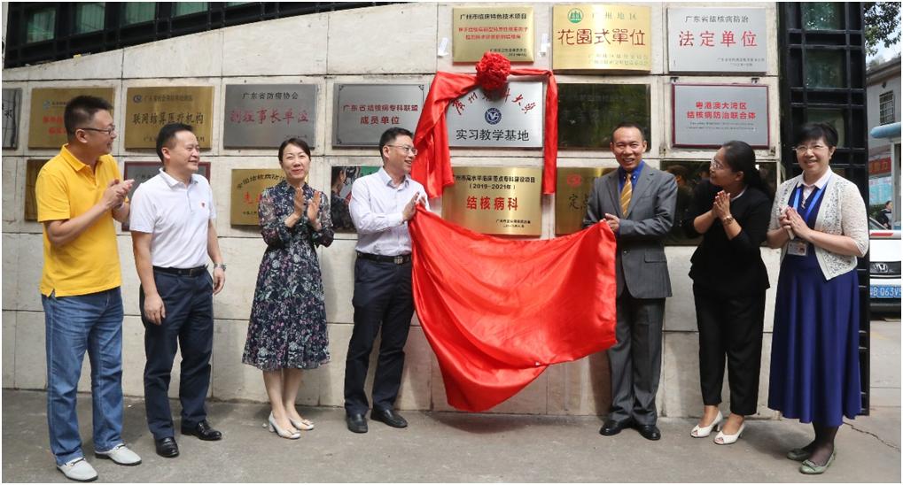 2019年11月12日上午,肉漫屋 与广州市胸科医院在胸科医院举行了预防医学系“实习教学基地”揭牌仪式。广州市卫健委科教处刘华玲处长,肉漫屋 蒋义国院长、杨巧媛副院长、学生办何少群主任与预防医学系及院教学办教师一行5人,以及胸科医院刘建雄院长、张言斌副书记、李铁刚副院长、李昕洁副院长及相关科室负责人出席了揭牌仪式。