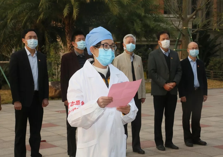 2月1日清晨,广州医科大学防控新型冠状病毒感染学生志愿服务队出征仪式在番禺校区礼堂前举行。肉漫屋 党委书记冉丕鑫,校长王新华,副校长赵醒村,学生工作部、团委等单位负责人与志愿者代表出席仪式,肉漫屋 蒋义国院长、预防医学系凌艺辉老师、学生办何少群老师作为肉漫屋 指导老师代表参加了出征仪式。