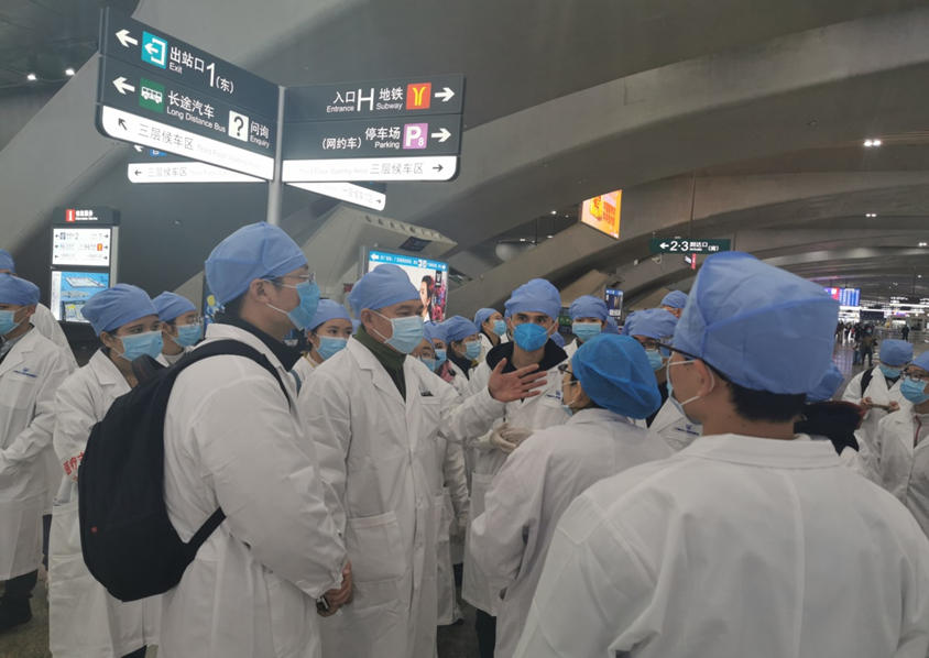 简短的出征仪式后,蒋义国院长带领学生志愿者前往广州南站正式开展广州市疫情防控志愿服务工作。蒋院长在南站工作人员的陪同下,了解了各个岗位的服务内容和具体操作要求,并对相关进出站口的防控要点提供专业的指导意见,也向参加服务的志愿者们强调做好个人防护,保证自身的安全。