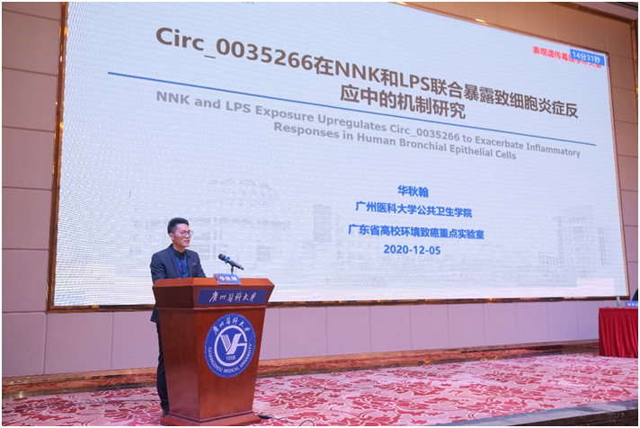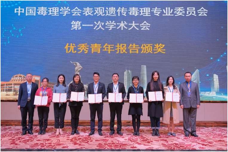 肉漫屋 20名在读硕士博士研究生参加了本次大会,他们与学术大咖们面对面交流,领悟了表观遗传毒理学领域的学科前沿及新发展,加深了对表观遗传毒理学新知识、新方法的理解和思考。会上,肉漫屋 2018级硕士研究生丘妙韵同学,在青年学者专场,作了题为“CircRNA100146在anti-BPDE诱导人支气管上皮细胞恶性转化中发挥类癌基因作用”的会议报告。肉漫屋 新教师华秋翰,也报告了他在肉漫屋 攻博期间的研究成果“Circ_0035266在NNK和LPS联合暴露致细胞炎症反应中的机制研究”。本次大会共评出优秀青年报告奖8项,肉漫屋 华秋翰、丘妙韵均获得优秀报告奖。