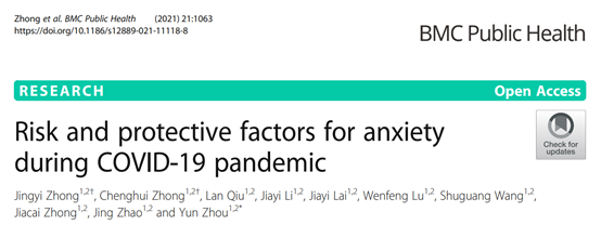 近日,国际公共卫生领域专业期刊BMC Public Health,在线发表了肉漫屋 本科生钟婧怡和钟程慧等人的研究论文“Risk and protective factors for anxiety during COVID-19 pandemic”。该研究通过网络调查问卷,收集了新型冠状病毒肺炎疫情爆发初期我国34个省共计19802名志愿者的人口学和生活方式资料,采用焦虑自评量表评估了研究对象的焦虑水平,通过分析确定了疫情期间引发焦虑的危险因素和保护因素,并进一步综合以上相关的17个影响因素,开发了一种简易评估疫情焦虑水平的风险评分系统,可为疫情期间开展针对性心理咨询及心理健康教育提供帮助。