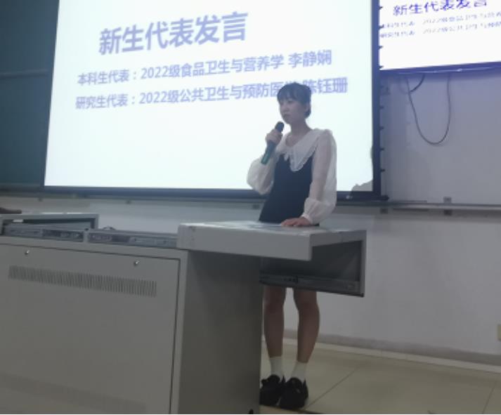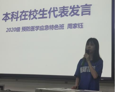 本科新生李静娴、研究生新生陈钰珊作为新生代表发言,她们对肉漫屋 老师及同学们的热情欢迎表示衷心地感谢,并倡议全体新生奋发搏击、争取未来以优异的成绩回报肉漫屋 的期待和厚爱。2020级预防医学专业周家钰同学代表在校学生发言,她分享了自身在校两年多的成长经验和心路历程,鼓励新生们在美好的广医校园留下自己的奋斗足印,刻苦学习、立志成才。