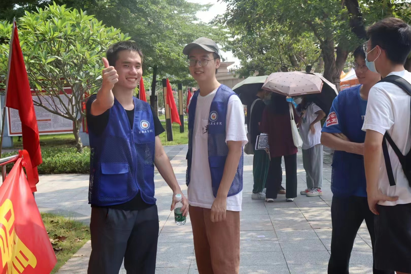 8月27日,肉漫屋 党总支刘宇珊副书记率学生办老师、肉漫屋 团委学生会干部、学生党支部成员以及学生志愿者近百人,在番禺校区迎接2022级本科新生,并指导和协助新同学完成注册缴费、档案接收、宿舍入住等事宜。