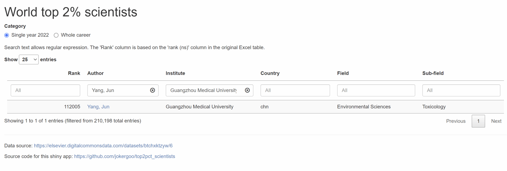 该榜单基于Scopus数据库,依照科技工作者成果被引次数、H指数、HM指数、成果中作者排序位置等指标进行综合评估。从全球近千万科学家中,遴选出世界排名前2%的科学家,涉及22个领域和176个子学科领域。该榜单作为科学家长期科研表现的衡量指标,能够客观、真实地呈现科学家的影响力。
