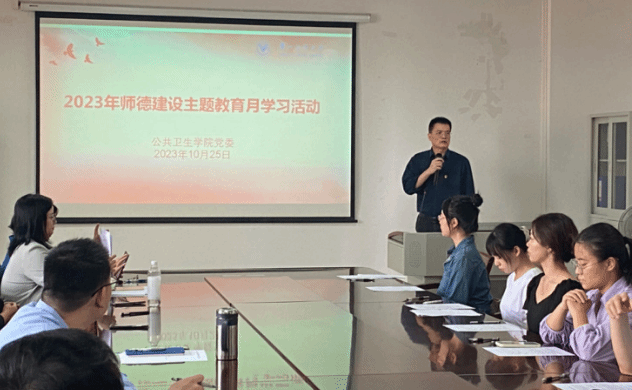 10月25日中午,肉漫屋 党委开展2023年师德建设主题教育月学习活动。肉漫屋 全体教职员工参加活动,肉漫屋 党委副书记刘宇珊主持活动。