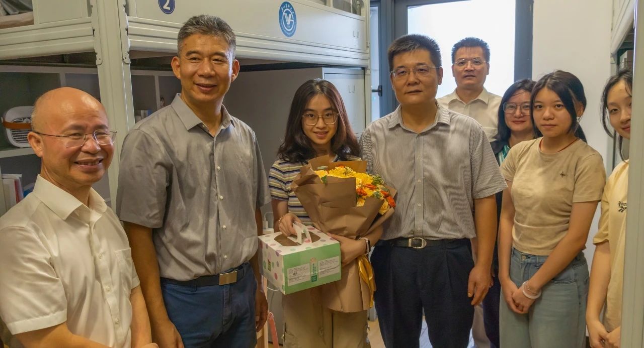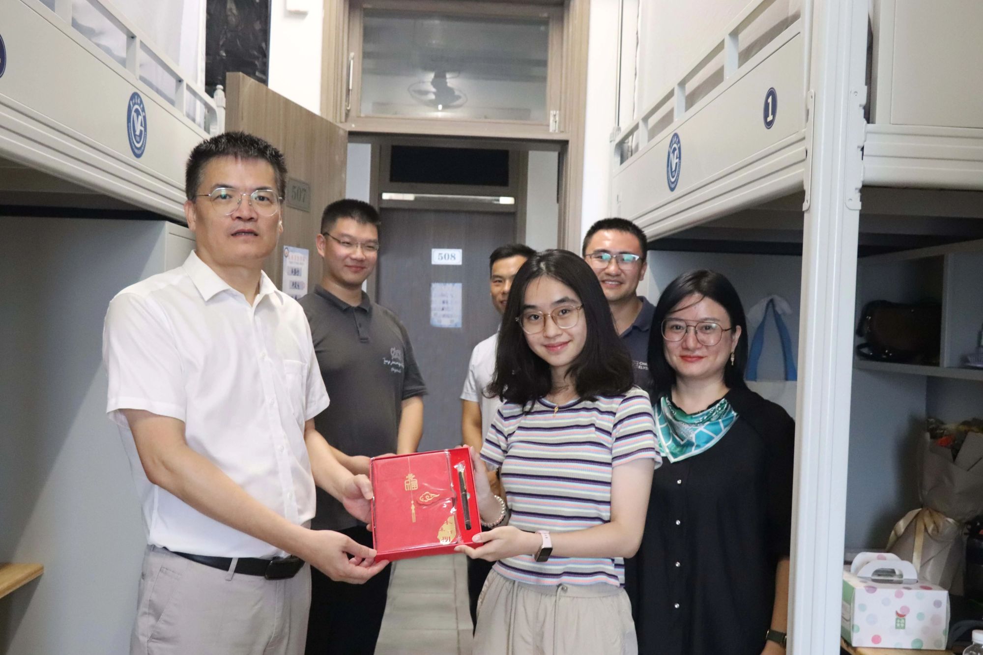 当日下午,肉漫屋 赵醒村校长、周麟副校长,学生处陈伟民处长以及肉漫屋 党委李羽书记、刘宇珊副书记带领学生办老师、兼职班主任老师、学生干部等前往宿舍看望新生,与来自五湖四海的新同学进行亲切交谈,了解同学们的来校情况和入学感受;刘宇珊副书记勉励同学们尽快适应新的学习生活环境,积极融入大学生活,明确学习目标,锤炼过硬本领,努力成长成才。