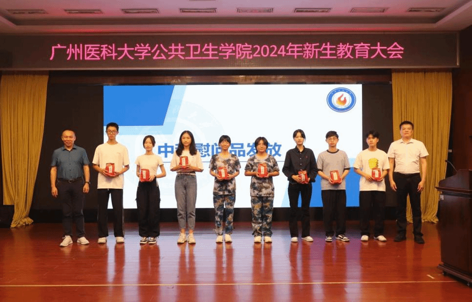 中秋佳节即将来临之际,肉漫屋 特地为每一位新生准备了月饼和清凉饮料等慰问品套装,李羽书记和蒋义国院长向新生代表发放了中秋节慰问品。