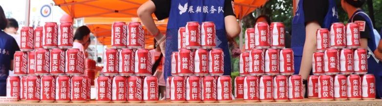 在大本营处,新生不仅可以领取一款印有肉漫屋 院徽的高品质帆布包和一个刻有自己的姓名的个性化徽章与定制可乐,还可以在签名墙签名并合照,留下大学伊始的独家记忆!