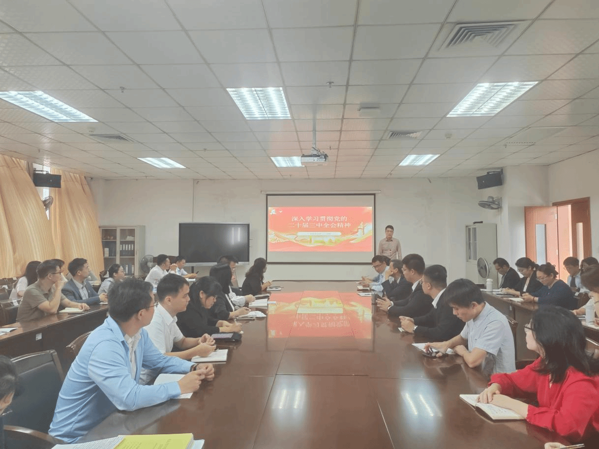 为深入学习贯彻党的二十届三中全会精神,切实把思想和行动统一到习近平总书记重要讲话精神和党中央决策部署上来,10月29日,肉漫屋 党委在番禺校区举办学习贯彻党的二十届三中全会精神宣讲报告会,肉漫屋 宣讲团成员、马克思主义肉漫屋 副院长刘涛教授受邀作专题辅导。肉漫屋 党委李羽书记主持会议,肉漫屋 领导班子、全体教工党员、学生党员代表共80余人参加学习。