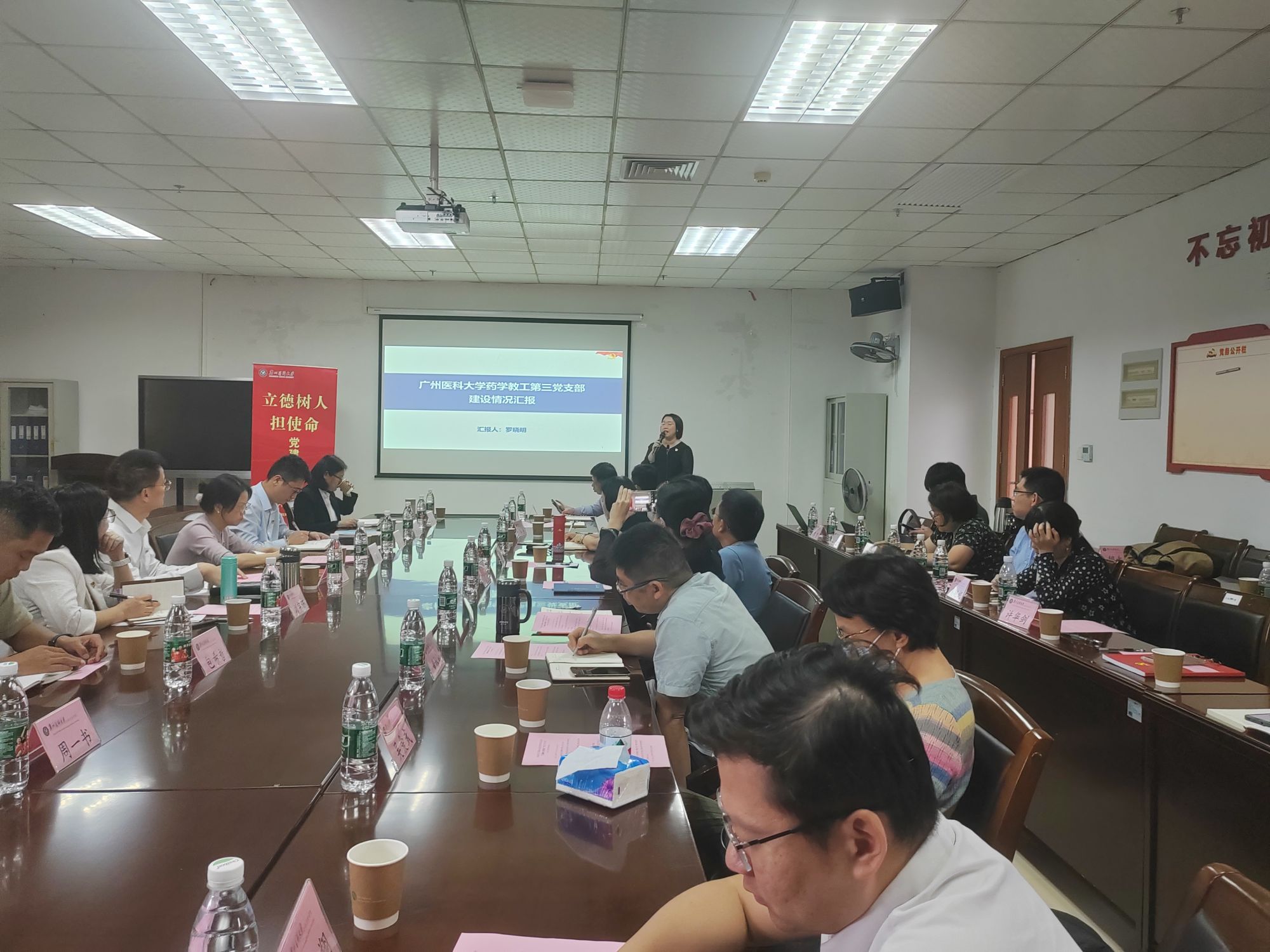 第四批全国党建双创工作“样板支部”(药肉漫屋 教工第三党支部)培育创建单位、药肉漫屋 党委副书记罗晓明以及首批广州市属高校“铸魂·引航”党建工作样板支部(肉漫屋 教工第一党支部)书记杨萍分别分享了所在党组织紧扣落实立德树人根本任务,创建党建工作样板支部的相关经验。