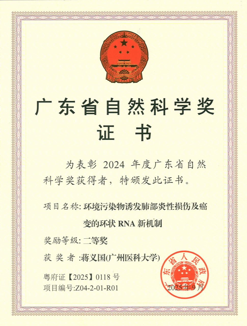 (2024年度自然科学奖证书)
